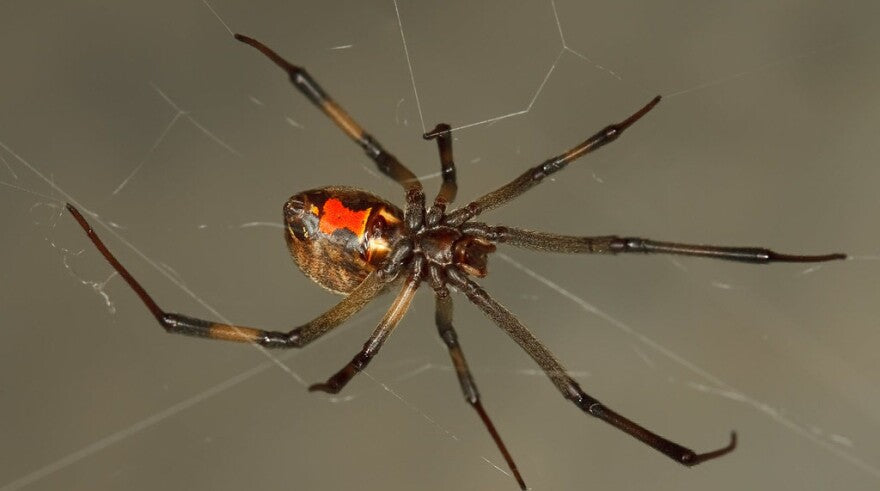 The Brown Widow’s body displays an elegant mix of tan, brown, and black geometric patterns, paired with an unmistakable orange hourglass marking on its underside. Its spiky, tan egg sacs also make identification easy and fascinating for observers.